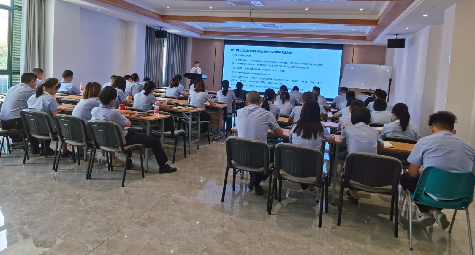 5月27日,公司人資行政部組織營銷中心、物資管理部財務部等部門的部門負責人、業務專員及營銷團隊,開展關于“買賣合同法律風險防范”的專題法律培訓。