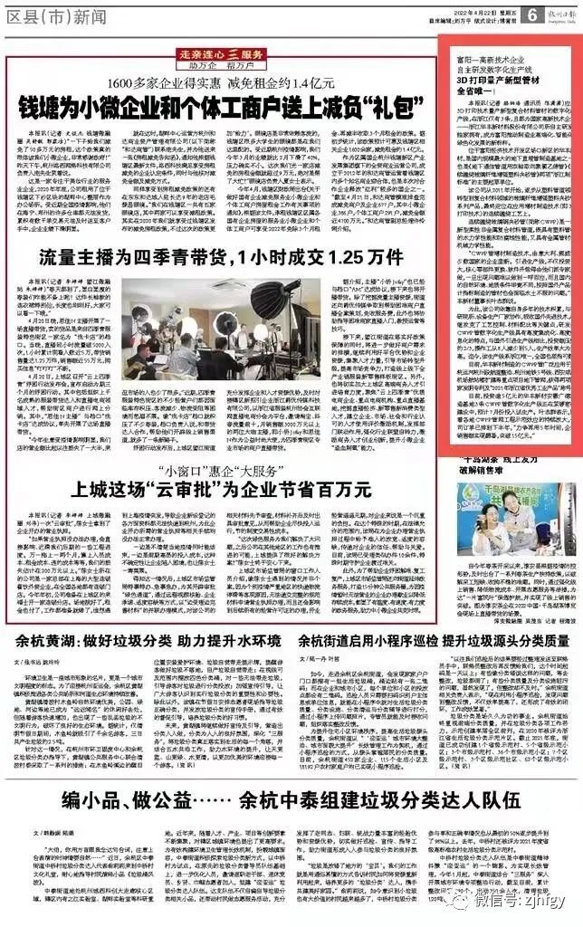 4月22日,杭州日報以“富陽一高新技術企業(yè) 自主研發(fā)數(shù)字化生產線”為題,報道我公司智能化、數(shù)字化、高端化的連續(xù)纏繞玻璃鋼夾砂管(簡稱CWFP)3D打印技術生產線。